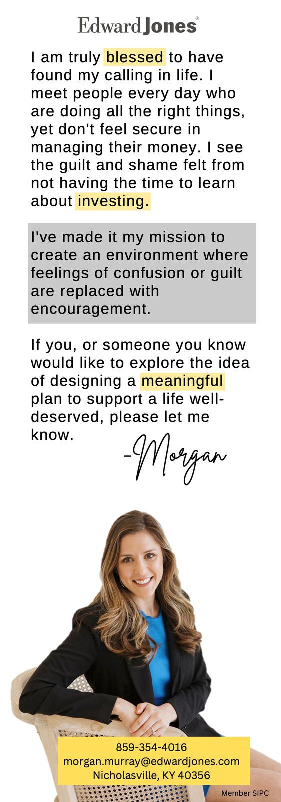 Edward Jones Advisor: Morgan Murray 504 N Main St., Ste E., Nicholasville, KY 40356 859-881-8246