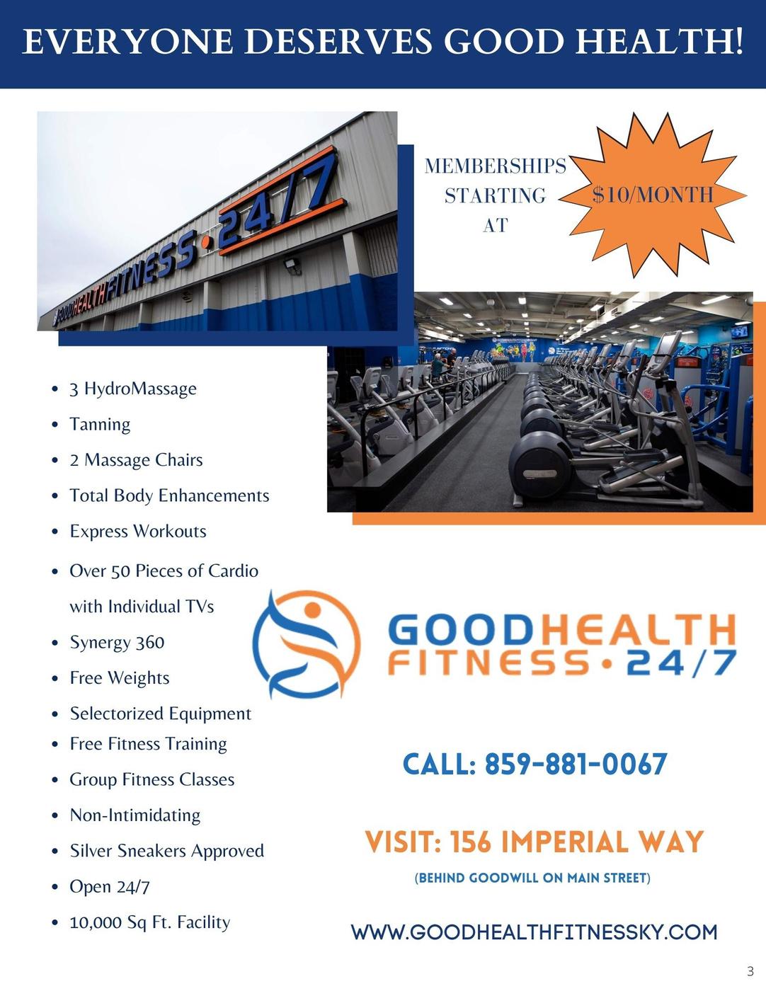 156 Imperial Way, Nicholasville, KY 40356 859-881-0067 | www.goodhealthfitnessky.com
