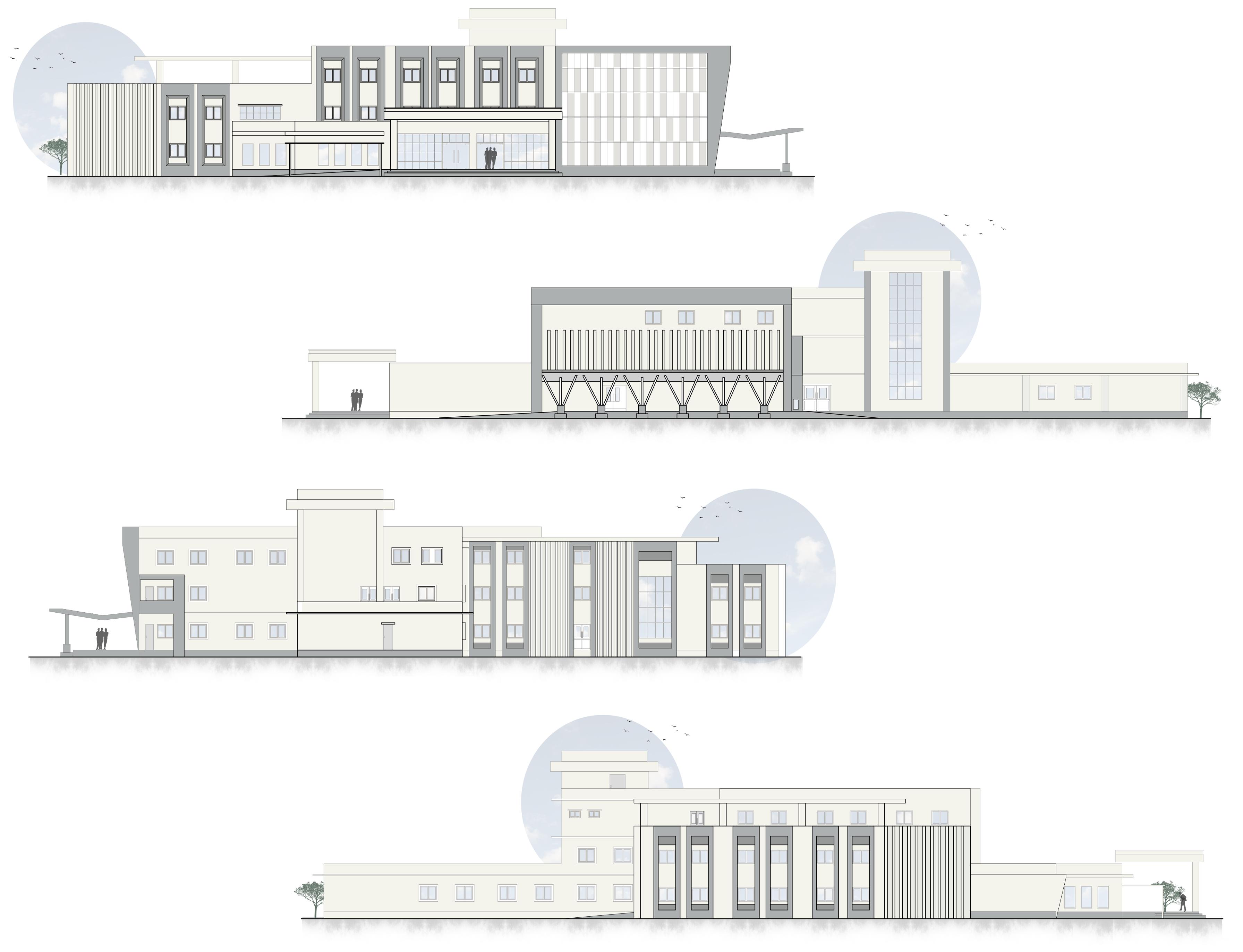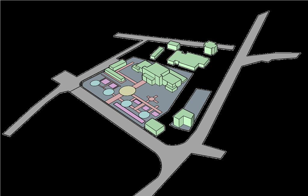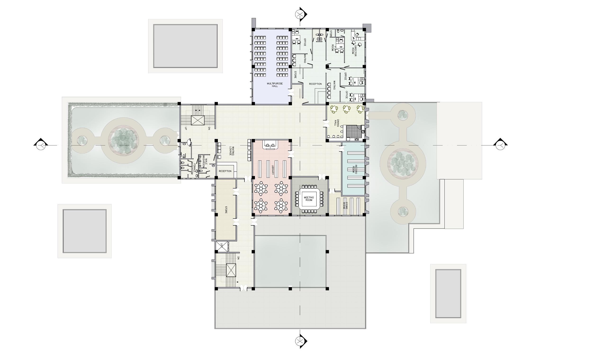 Efficient flow of patients, staff, and resources. Dedicated spaces for key hospital functions. A healing environment with courtyards and green zones for natural light and ventilation.