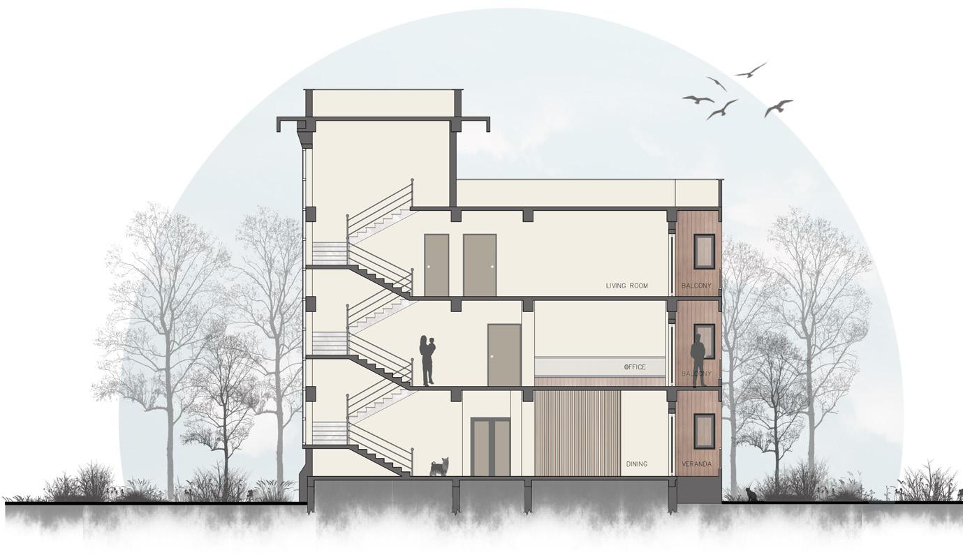 The design follows a modular and zoned layout with distinct yet connected blocks. This approach ensures: