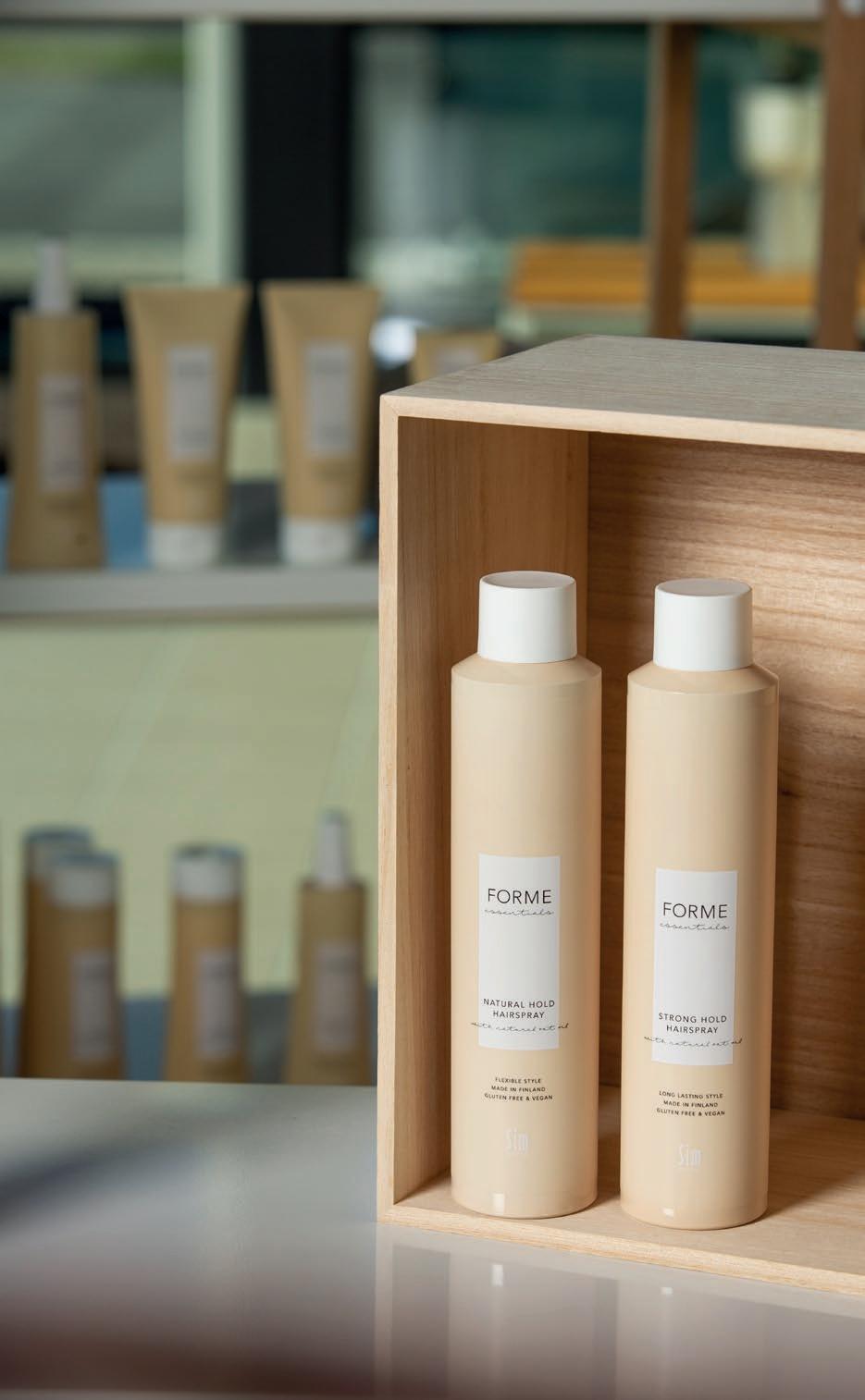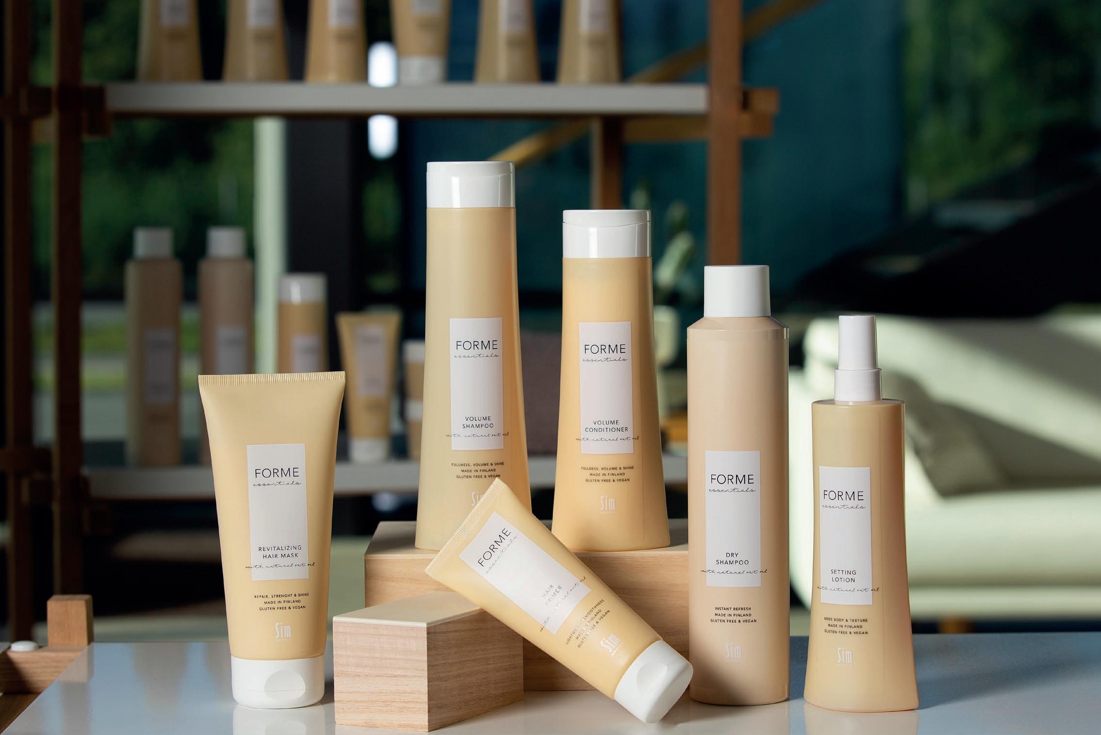 Forme Essentials -tuotteet ovat loistava vegaaninen myyntituotesarja hiusten luonnollisen kosteustasapainon saavuttamiseen sekä sen yllä pitämiseen. Forme Essentials -sarjasta löytyy niin hoito- kuin muotoilu tuotteet, jotka myös jättävät kampaamoille hyvän myyntikatteen.