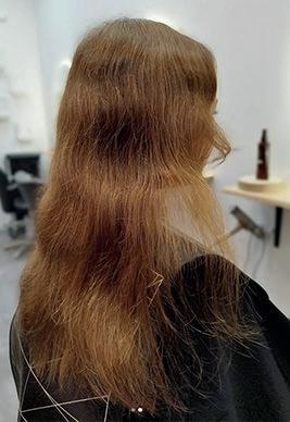 Vaalennuksen jälkeen hiukset saivat herkullisen persikkaisen sävyn Nordic Shades sävyjen T/346 + T/73 + T/046 yhdistelmällä!