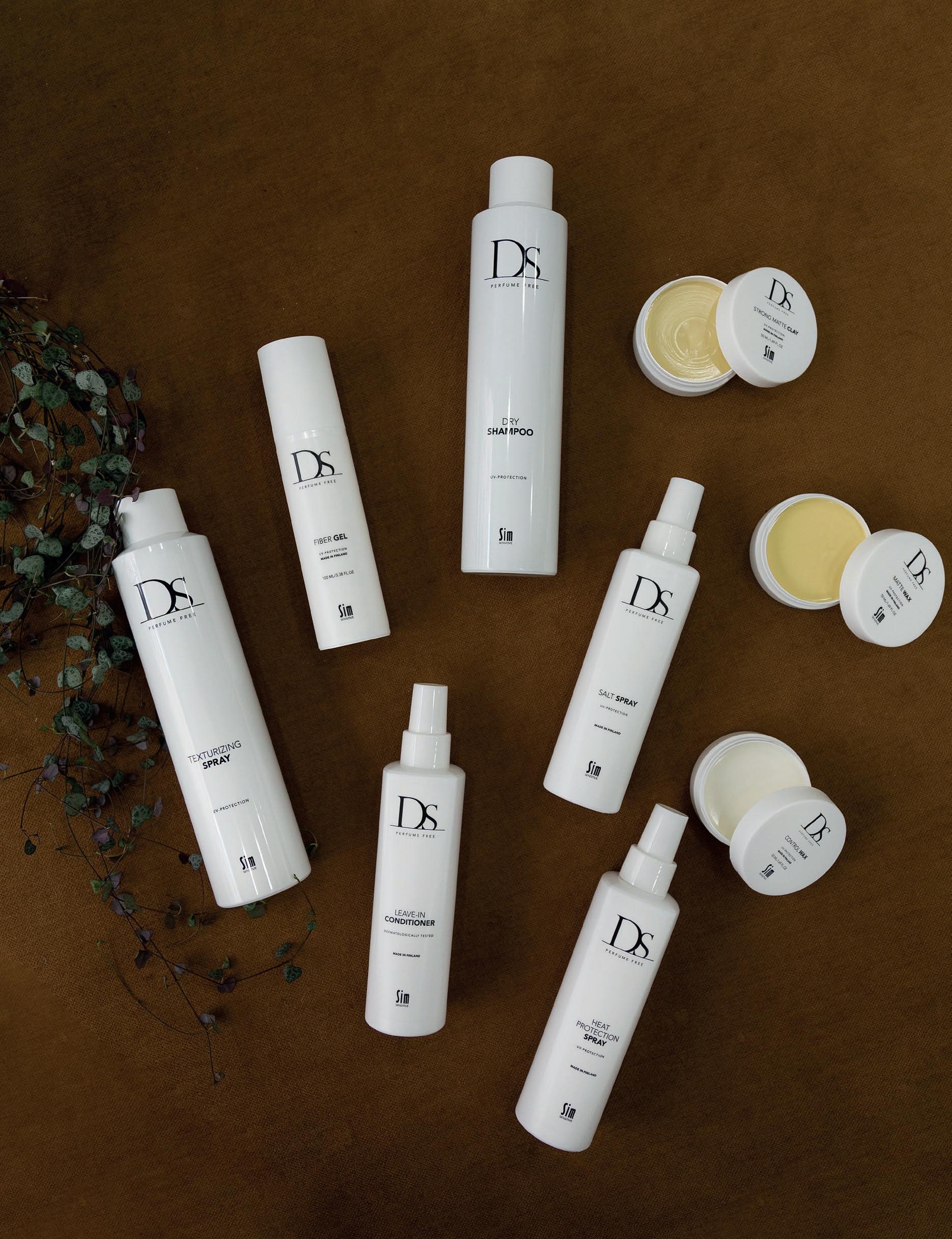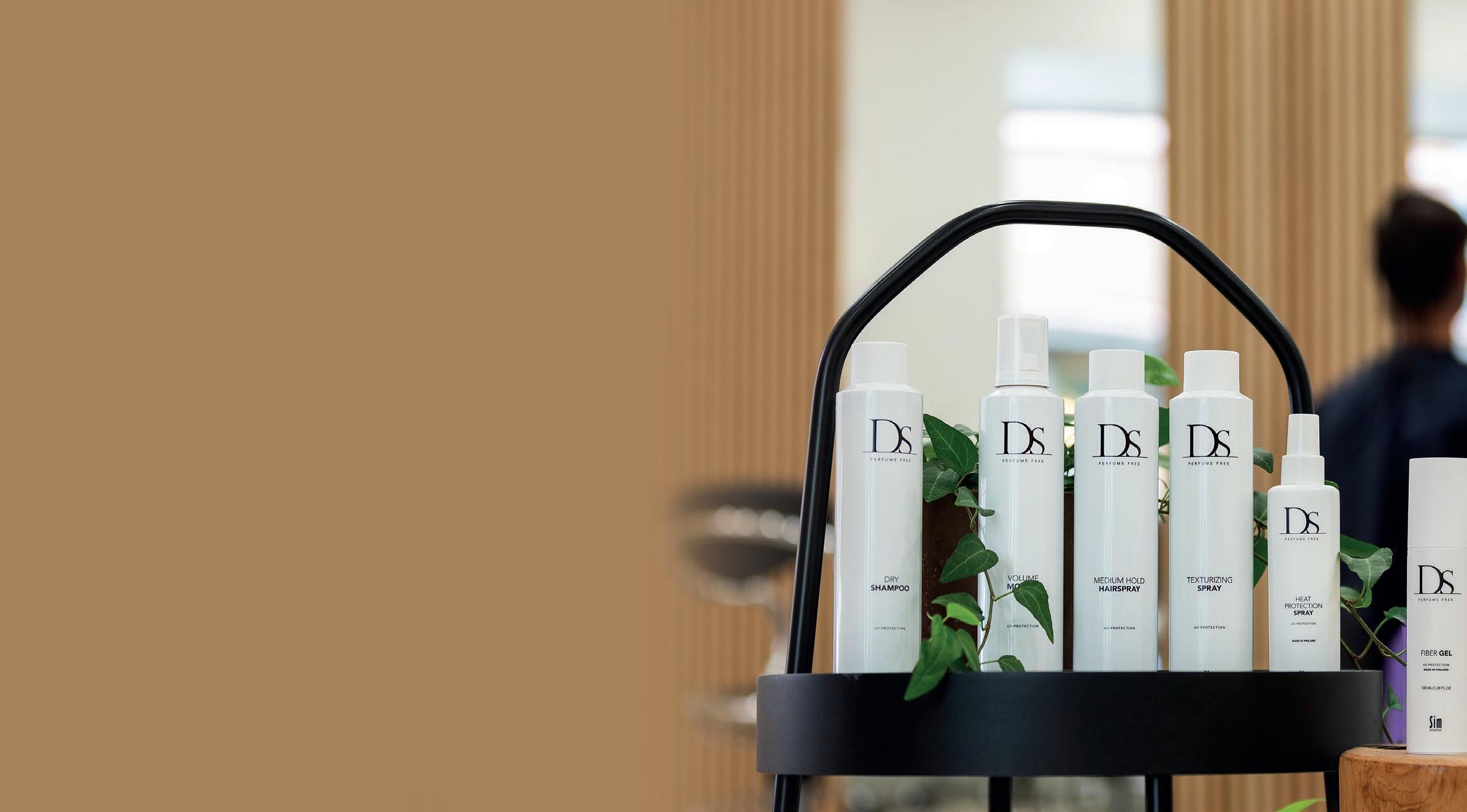 Kaikki tuotteet on kehitetty ja valmistettu Suomessa, ja ne sopivat kaikentyyppisille hiuksille.