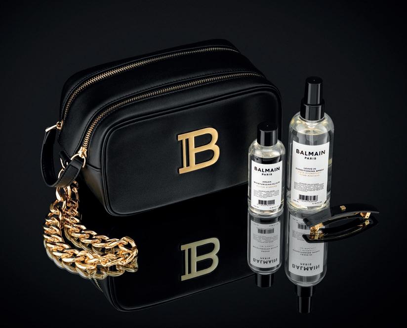 Balmain Pouch on upea keinonahkainen kosmetiikkalaukku, jota koristaa kultaiset yksityiskohdat.Kosmetiikkalaukussa on käytännöl linen dual-vetoketju sekä ikoninen käsiranneke. Pakkaus sisältää Leave-In Conditioning Sprayn, Argan Moisturixing Elixirin sekä aidon Balmain Barrette Pour Cheveux Medium Black -hiusklipsin.