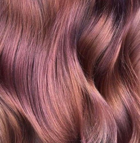 Pohjan ruusukultainen väri 10/34 (30 g) + T/346 (30 g) + T/046 (30 g) + 9/446 (10 g) + 2.1 % 1:2. Edessä ripaus värikkäitä osioita tehtynä SensiDO Match -suoraväreillä.