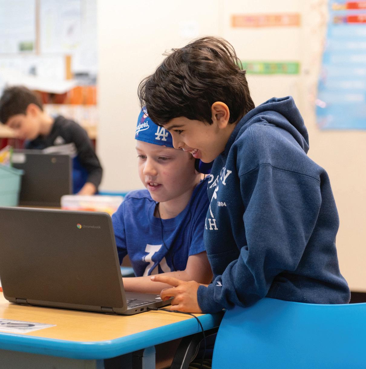 Lower School students feel nurtured, valued, and challenged in their community, and inspired to find purpose in their learning. They study ancient and contemporary Jewish texts and effectively present their interpretations, solve complex geometric problems, and hypothesize about the changing state of matter. They create beautiful paintings that enliven our spirits, shine as published writers, and become responsible digital citizens.