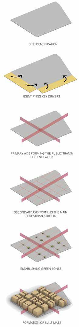 - Next to Railways - Lack of public realm - Lack of infrastructure needs - Densified and derelict spaces -Largely out of scale with the rest of the city - No community engagement due to less residential spaces in the area - Declining port activities block Defining the central axis Adding blocks 7. 4.