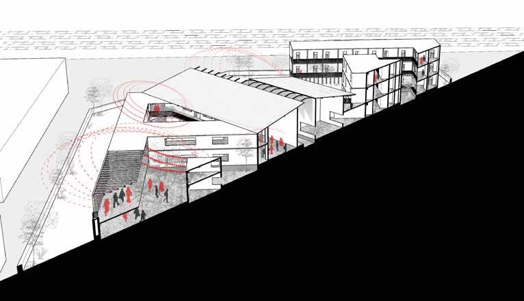 Traditional block Stretching the block Opening the block Defining the central axis Chnaging the geaometry to break the monotony Axial shifting Adding blocks 1. 5. Avoiding vis-a-vis 8. Adding block to break the visual connect for an outsider 9. Creating pockets of spaces amongst the built 10. 6. 7. 2. 3. 4. Form development Local National Global The Festival can experformances, workshops, visual ever-expanding events around the world. speeches made by people respecting a principle of Railway Buildings Commercial Residential Railway station Bus stop S
