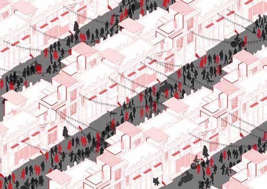 Traditional block Stretching the block Opening the block Defining the central axis Chnaging the geaometry to break the monotony Axial shifting Adding blocks 1. 5. Avoiding vis-a-vis 8. Adding block to break the visual connect for an outsider 9. Creating pockets of spaces amongst the built 10. 6. 7. 2. 3. 4. Form development Local National Global The Festival can experformances, workshops, visual ever-expanding events around the world. speeches made by people respecting a principle of them Railway Buildings Commercial Residential Railway station Bus stop