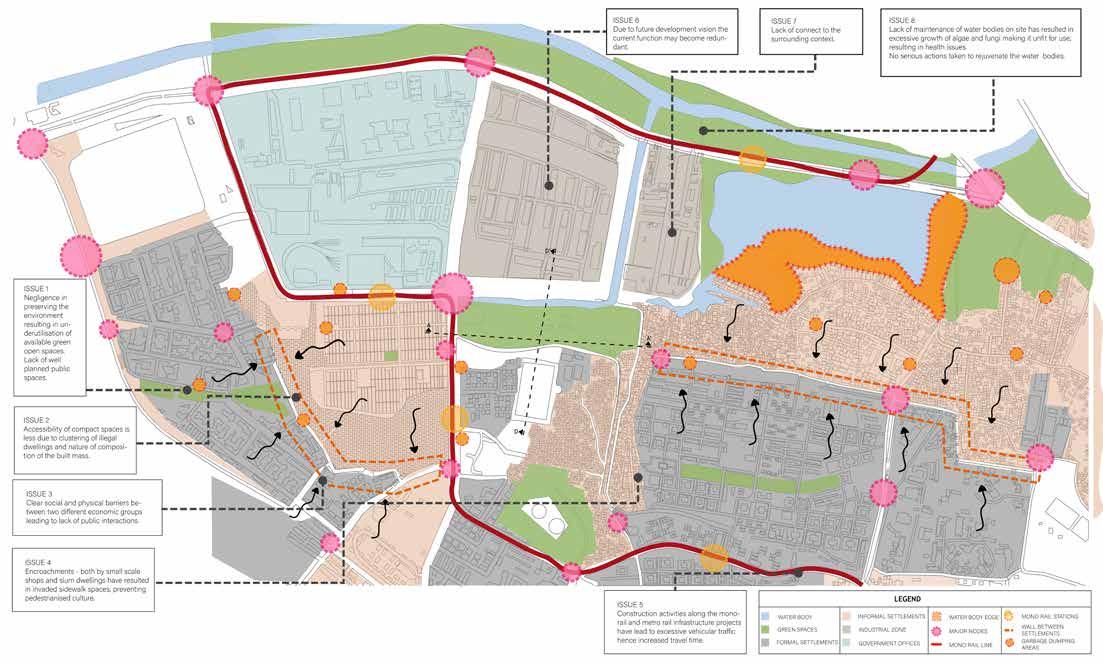 - Next to Railways - Lack of public realm - Lack of infrastructure needs - Densified and derelict