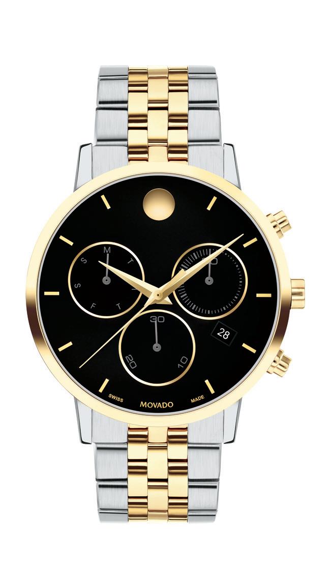 42mm Two-Tone SS/Yellow Gold PVD Case & Bracelet with Black Chronograph Dial & Yellow Gold Accents. Features Date Window Detailing. $1,395