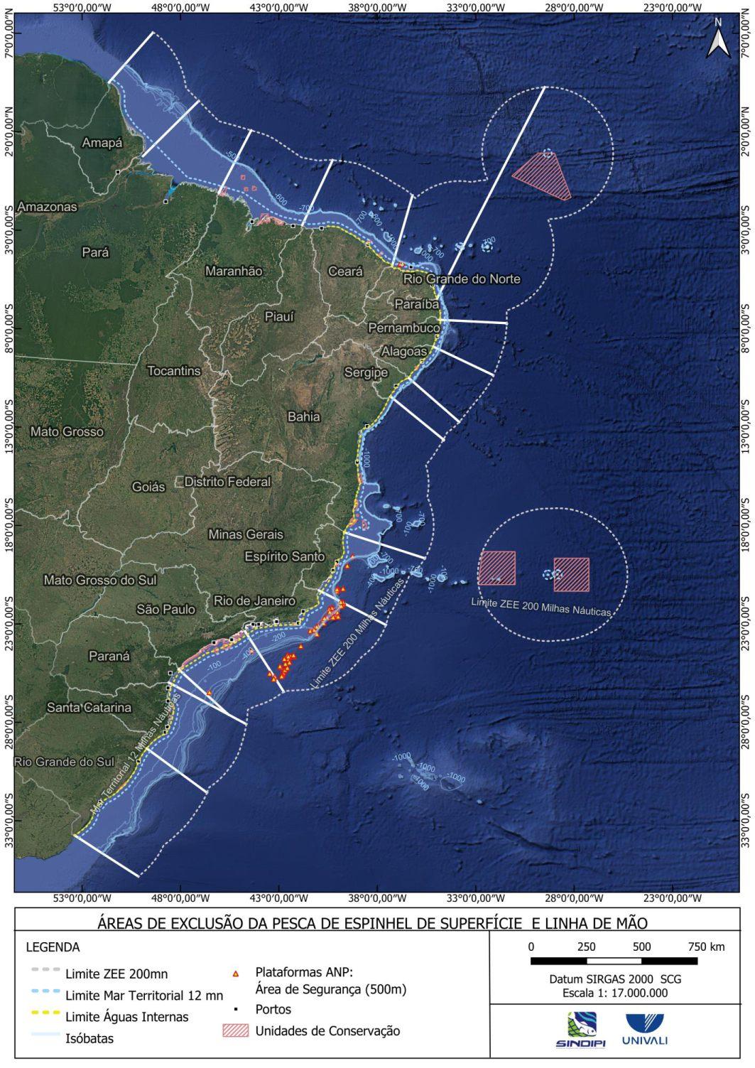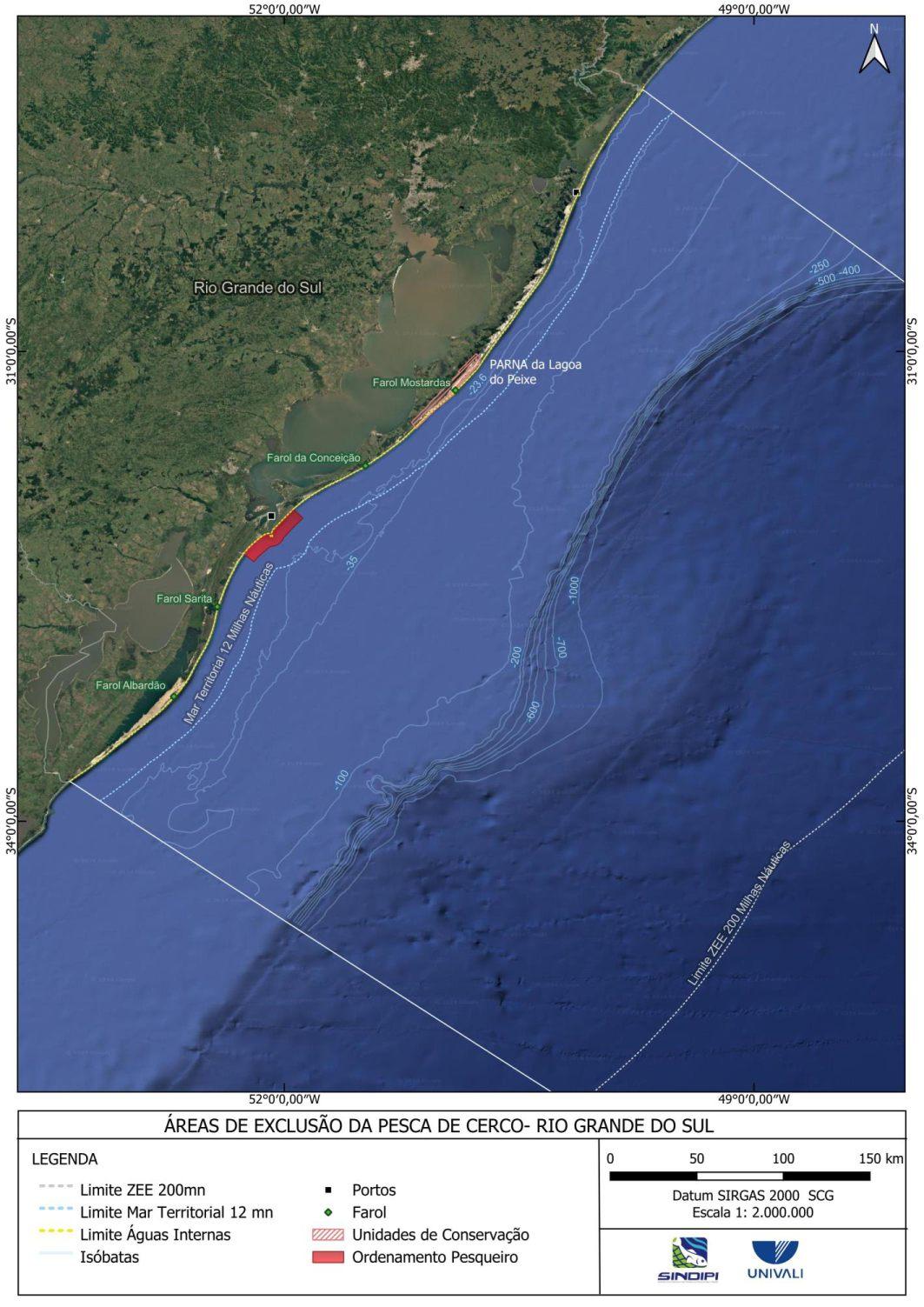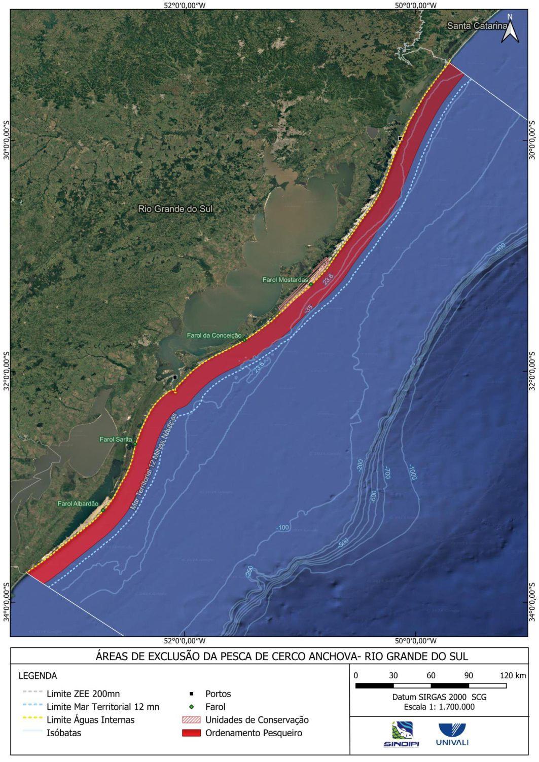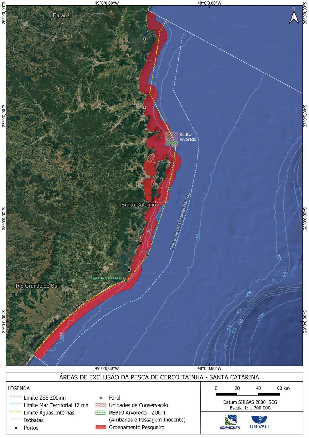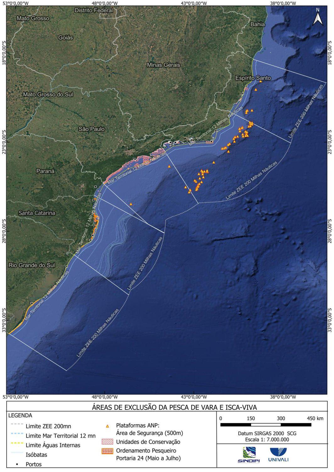 A cartilha de áreas de exclusão da pesca industrial Sudeste e Sul foi elaborada em parceria com a Univali e traz a descrição das legislações vigentes e mapas detalhados das áreas permitidas e proibidas para cada modalidade de pesca.
