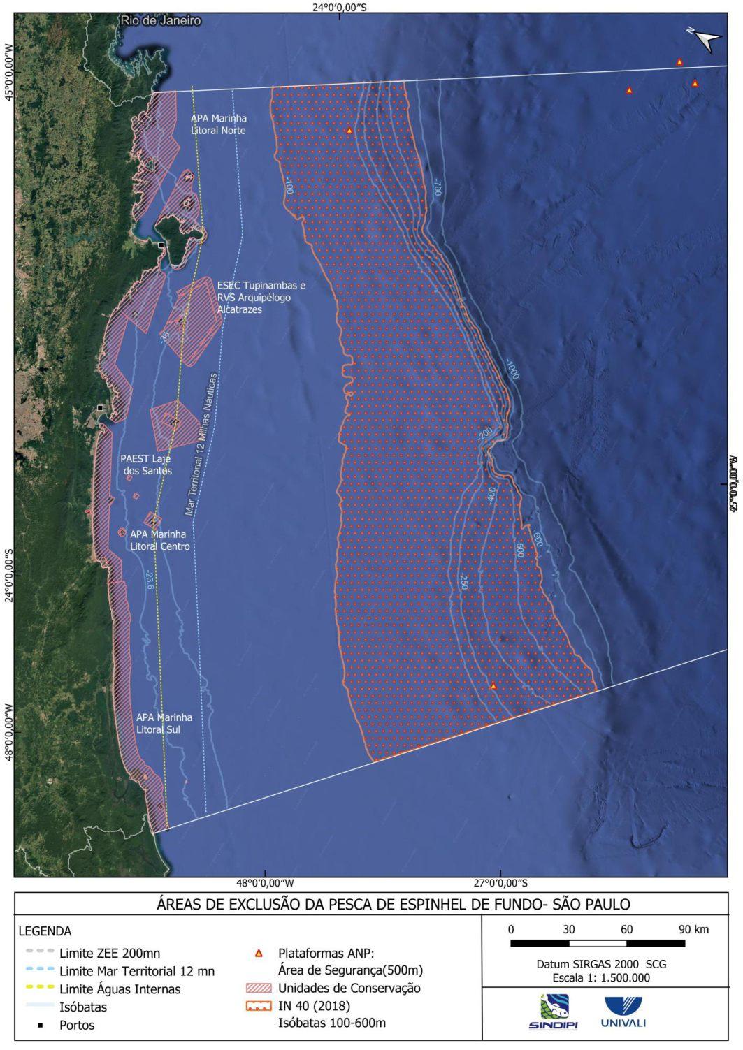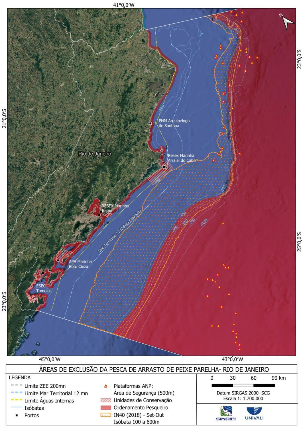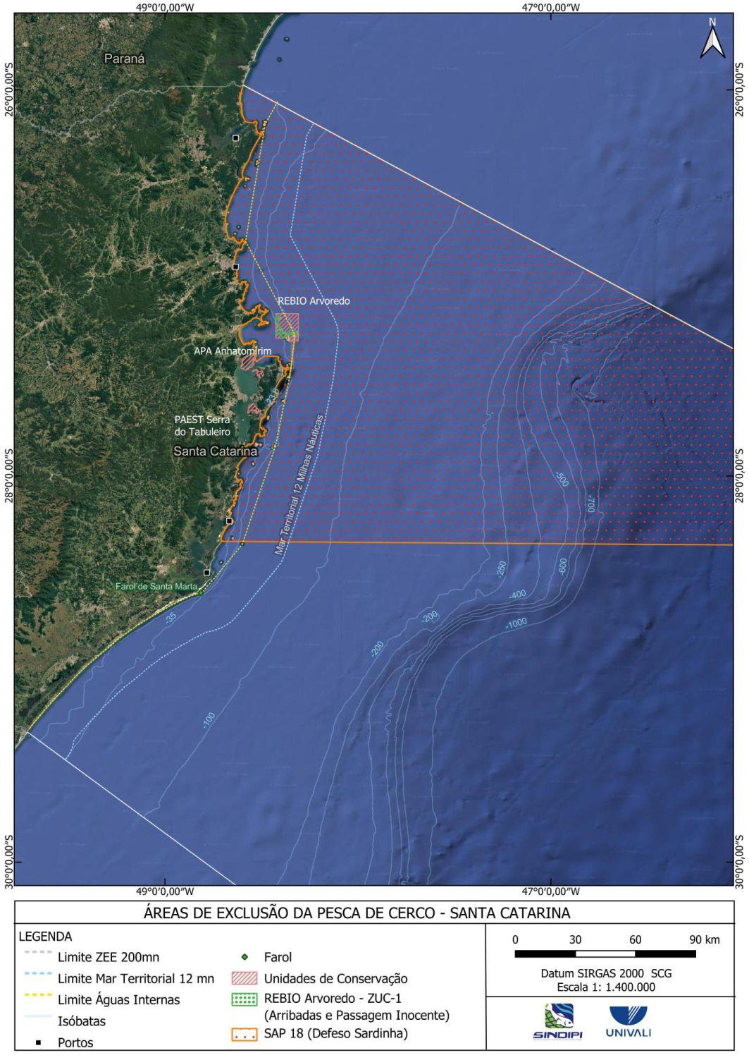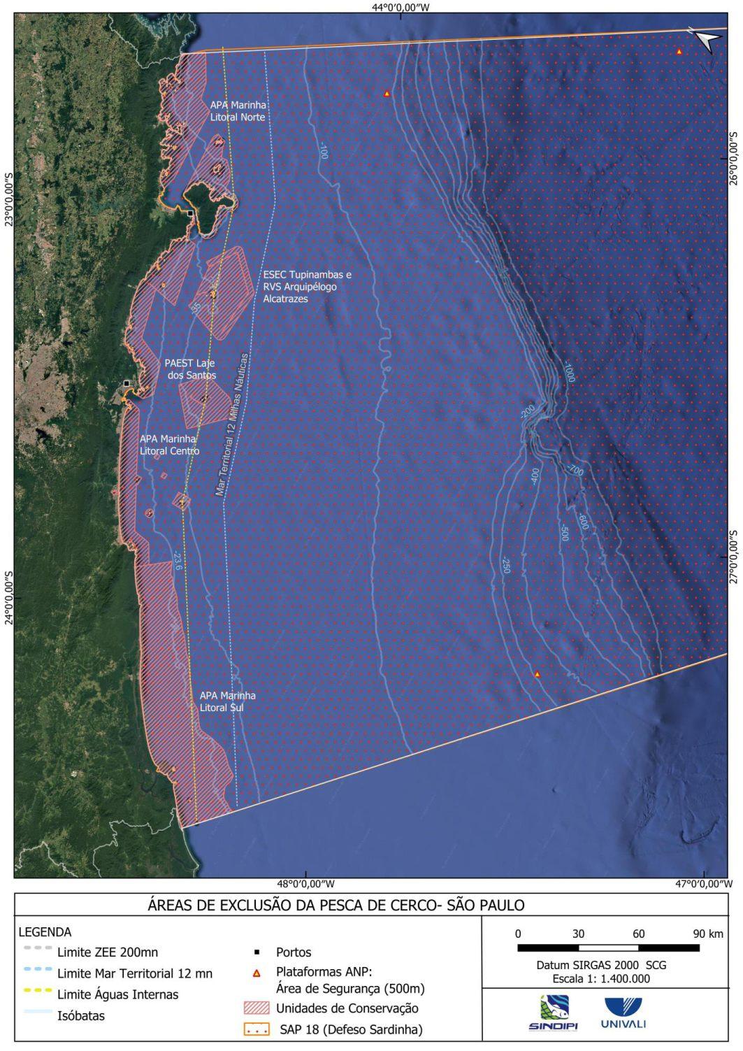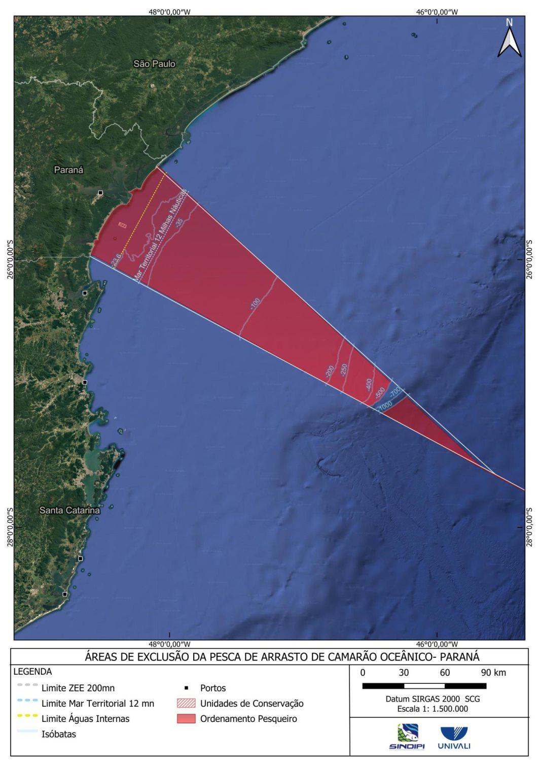 A cartilha de áreas de exclusão da pesca industrial Sudeste e Sul foi elaborada em parceria com a Univali e traz a descrição das legislações vigentes e mapas detalhados das áreas permitidas e proibidas para cada modalidade de pesca.