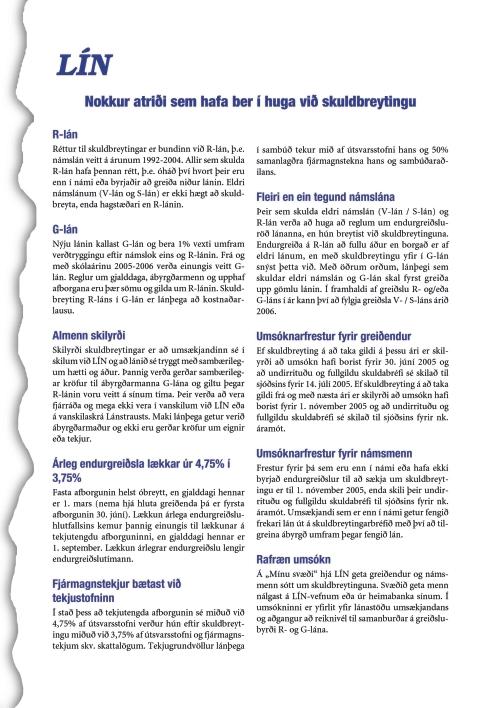 Um það leyti sem blaðið fer í prentun er verið að vinna í endurskoðun á úthlutunarreglum LÍN fyrir næsta námsár. Það er árviss viðburður og ávallt eru bundnar nokkrar vonir við bætt kjör námsmanna erlendis í þeirri vinnu. Undanfarið höfum við hlotið minna en gert var ráð fyrir. Það er því von mín að nú sé okkar tími kominn. Félagsmönnum verður tilkynnt um það í tölvupósti og á heimasíðu félagsins um leið og nýjar reglur liggja fyrir. Í blaðinu er að finna útlistun á helstu áhersluatriðum SÍNE við vinnuna í ár og hafa félagsmenn verið duglegir að benda á það sem betur má fara í regluverki sjóðsins.