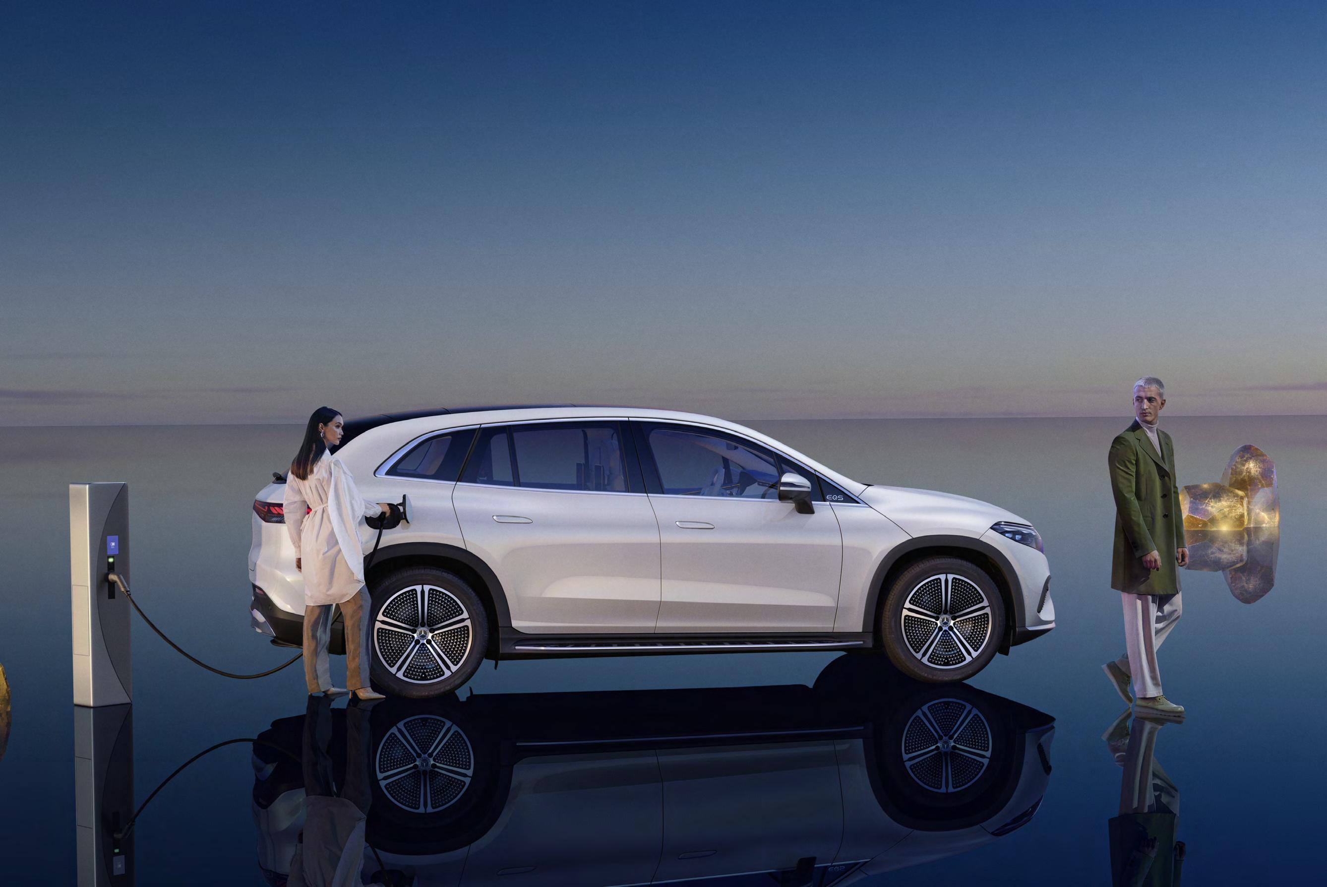 Mercedes-EQ EQS SUV 450+. Forbrug ved blandet kørsel 19,5 kWh/100 km (WLTP). CO₂-emission 0 g/km (lokalt). Ved valg af ekstraudstyr påvirkes bilens strømforbrug og dermed rækkevidde. Strømforbruget og rækkevidden påvirkes desuden af faktorer som kørestil samt vejr- og temperaturforhold. Bilen kan være vist med ekstraudstyr.