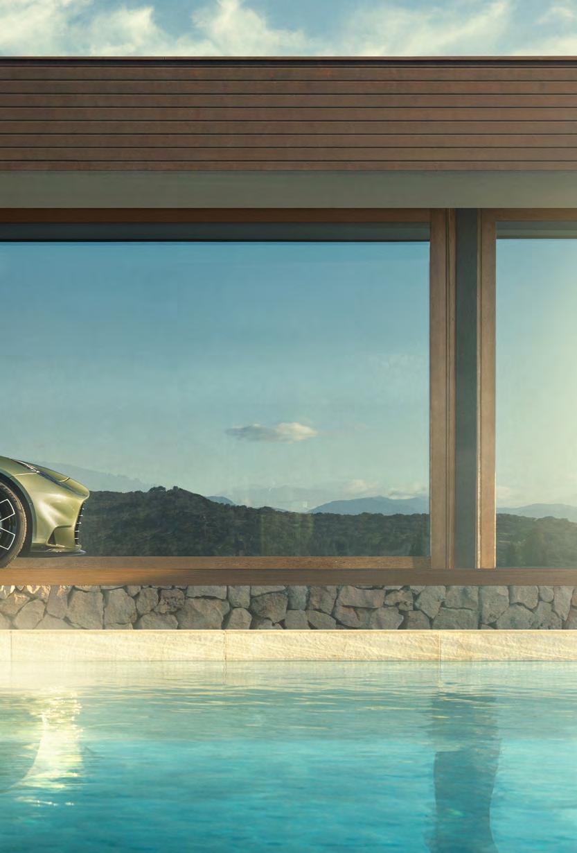 power to the rear wheels through bends. Carbon-ceramic brakes are standard, delivering immense stopping power, and Aston’s multi-stage traction control system lets you dial back the assistance in measured increments.