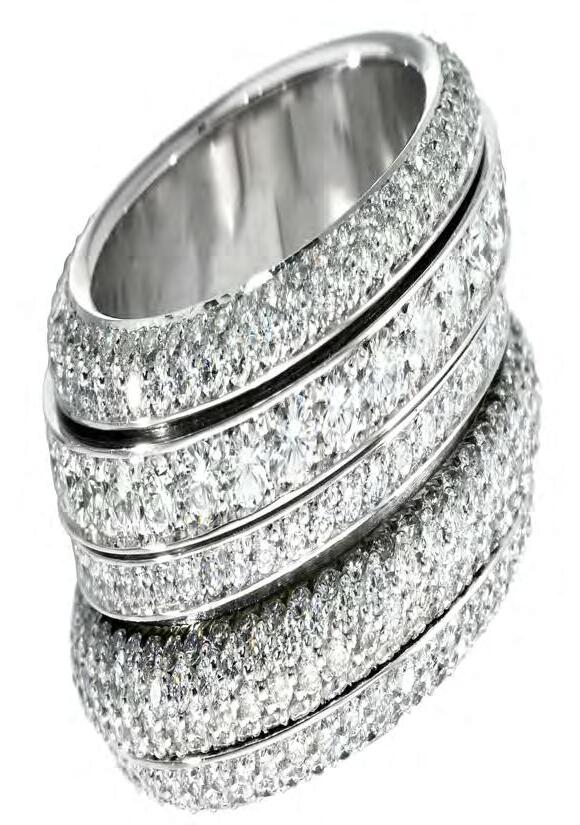 With the Twisted Alliance ring, the subtle turn of the Möbius band plays a game of peek-a-boo with the diamonds set on one side of the ring, catching the light from different angles, and thus giving additional sparkle to the precious gemstones.