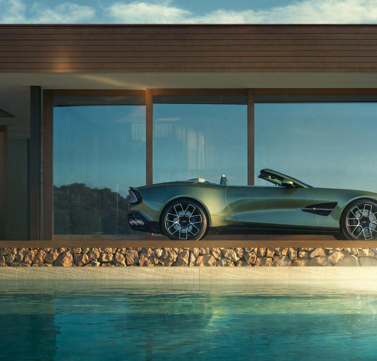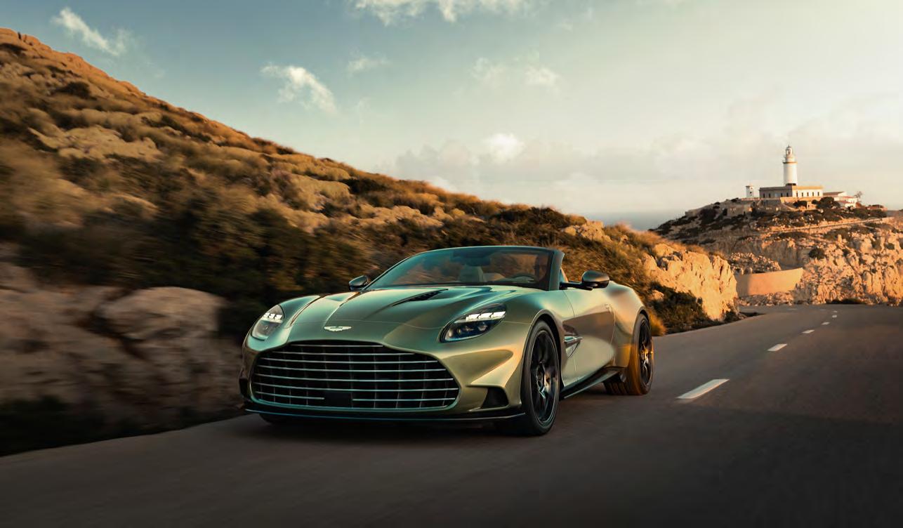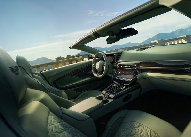 driving experience. The Volante is a tenth slower than the coupé, but with the roof down and the wind tearing past, it feels far quicker than the numbers suggest. Like the coupé, it features Aston’s clever new Boost Reserve system, which helps the turbos respond with near-instant force. Accelerate in too high a gear and you might momentarily catch it out but drop a couple of gears via the wheelmounted paddles and you can feel the stored pressure unleash itself in a distinct wave of controlled violence.