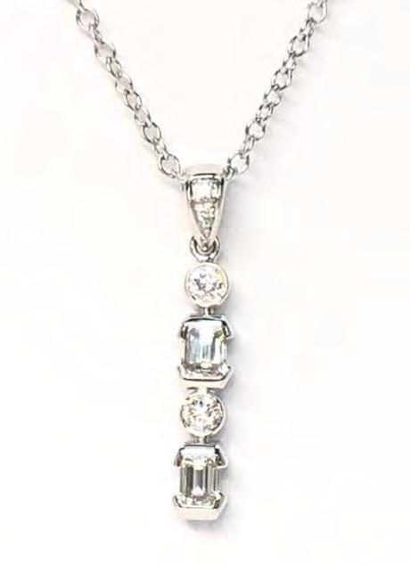 At its heart are two emerald-cut diamonds with a total weight of 0.34 carats, beautifully complimented by two sparkling brilliant-cut diamonds totaling 0.096 carats. The clean lines of the emerald cuts paired with the radiant sparkle of the brilliants create a piece that is both classic and captivating—perfect for marking a special moment or elevating everyday style.