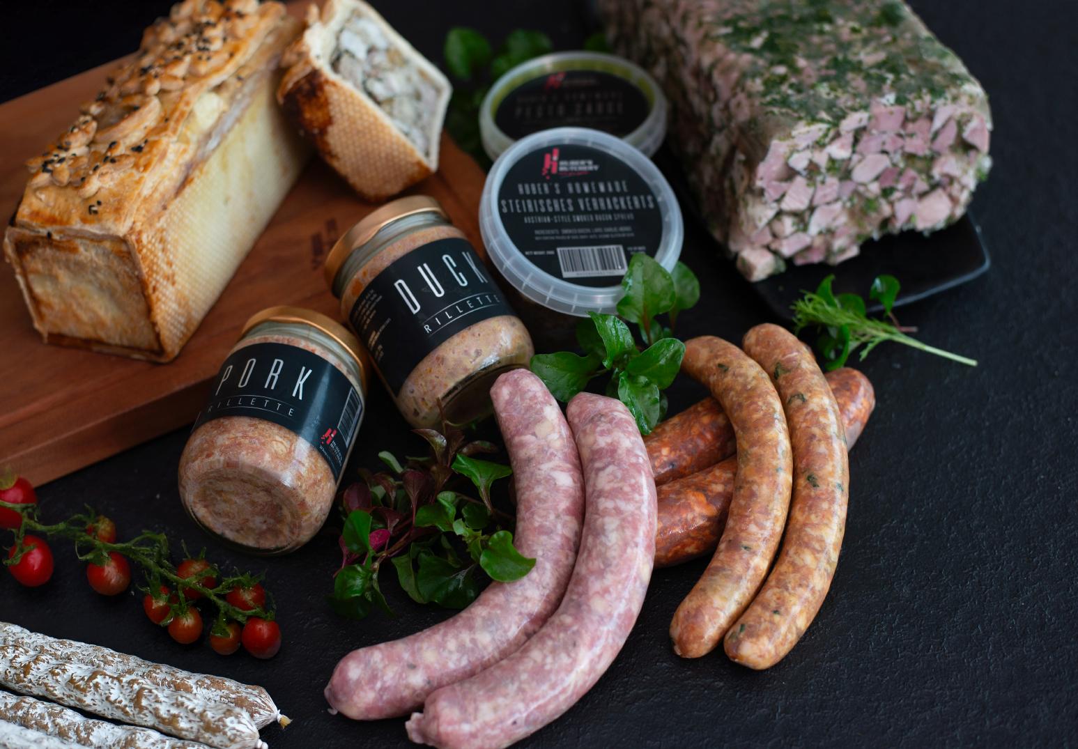 At Huber’s Butchery, every sauce, sausage, cold cut, and charcuterie is lovingly crafted using our own proven recipes. Made with the same uncompromising quality we serve to our own families. Free from llers, MSG, and preservatives, many of our products are gluten-free and made with wholesome ingredients you can trust.