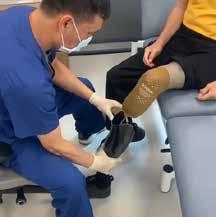“We aim to be a forerunner in cuttingedge prosthetics fitting and fabrication technology for better patient care, such as in assistive robotics and 3-D printing,” says Mr Saros Rouen, fitting a prosthesis onto a patient’s leg (left).