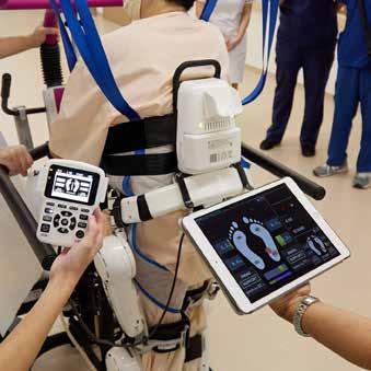 Fewer staff are needed when a patient is using the exoskeleton, which supports the patient and takes over the heavy work done by physiotherapists and assistants in conventional therapy.