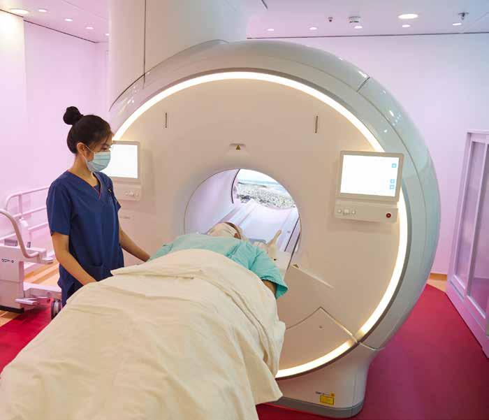 space within. SGH’s newest MRI machine can create a relaxing atmosphere and the illusion of more space and light. Scenes of a beach, for instance, can be played, while the scanning room can be lit in the patient’s preferred colour or turned off.