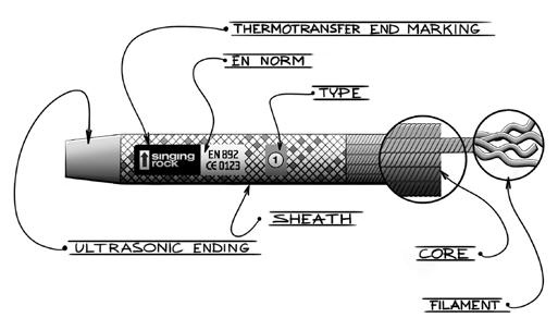 INNOVATION TESTING It is not necessary to talk too much about the innovation as it is inherently present in all our products. Meeting minimum requirements is obvious – but we go further by performing tests to simulate all kind of usage as the basis for further development. Appropriate technology and tools are essential to produce first-class products. TECHNOLOGY SINGING ROCK was founded in 1992. During 29 years of its existence, Singing Rock has established itself as a professional and innovative producer and supplier of climbing equipment. Nowadays SINGING ROCK is one of the world leaders on the market of climbing equipment for all activities in a vertical world. Most of the high-performance and innovative products are developed and produced in Czech Republic, Europe. All products are certified and fully comply with the international industrial safety standards. Our products are innovative, modern and easy to use, with great strength and with maximum comfort. Braided intermediate sheath made from staple fibres Single tech sheath Braided core Paralel core
