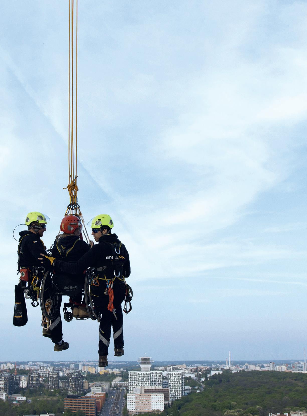 Postroj s nezávisle nastavitelnými popruhy pro lanový přístup s širokým polstrovaným bederním pásem, nohavičkami a ramenními popruhy. Rovněž se hodí pro polohování pracovníka, zachycení pádu a záchranu.