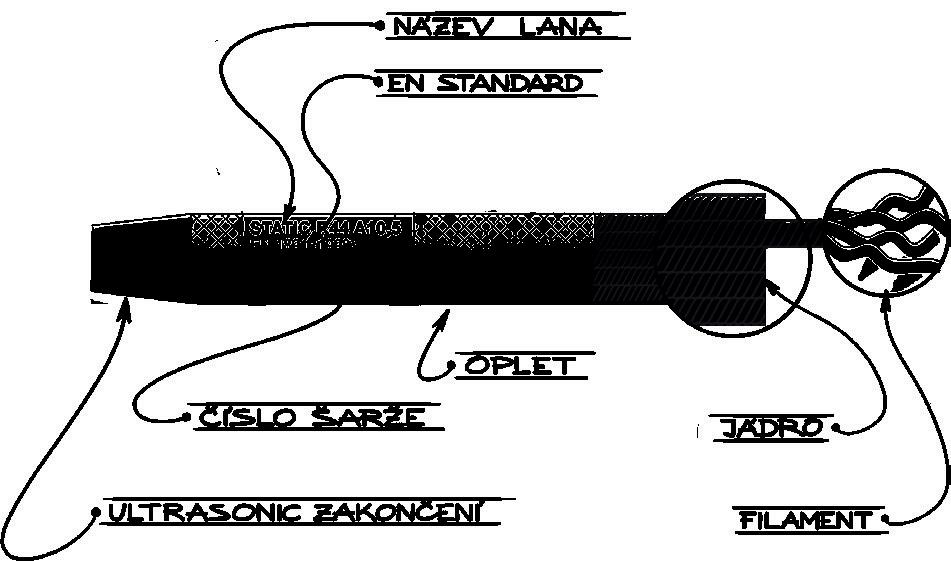 OOP pro prevenci pádu z výšky Nízko průtažná lana s opláštěným jádrem