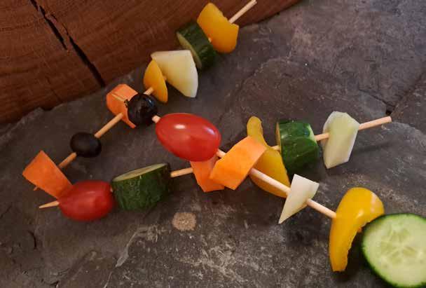 Überlegen Sie zu Beginn, wie viele Gemüsesorten Sie anbieten möchten. Schneiden Sie das Gemüse in mundgerechte Stücke. Sie benötigen verschiedenfarbige Gemüsesorten, die sich gut aufspießen lassen. Geben Sie das Gemüse separat nach Farben sortiert in kleine Schalen. Bereiten Sie einen Tisch vor und stellen Sie die Schalen in die Tischmitte. Legen Sie die Holzspieße und den benötigten Würfel dazu. Sie haben mehrere Möglichkeiten für die Gestaltung des Spiels: