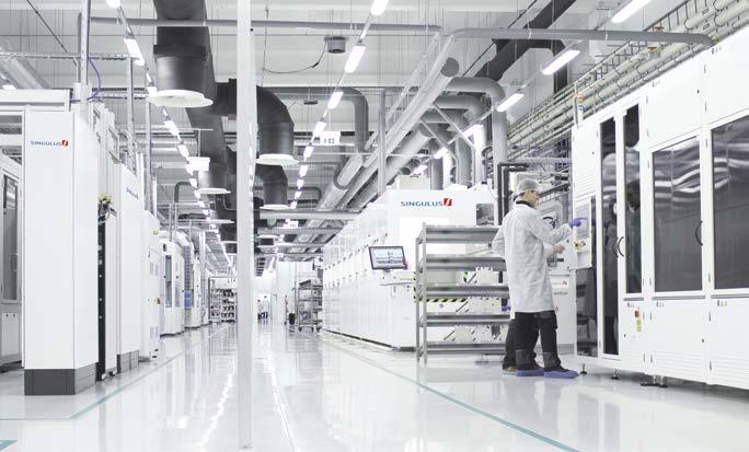 SINGULUS TECHNOLOGIES production equipment follows the requirements of the latest PV cell processes, high throughput, low material and media consumption, thus enabling to improve cell efficiency, to save energy and raw materials and to reduce manufacturing costs for highly efficient solar cells.