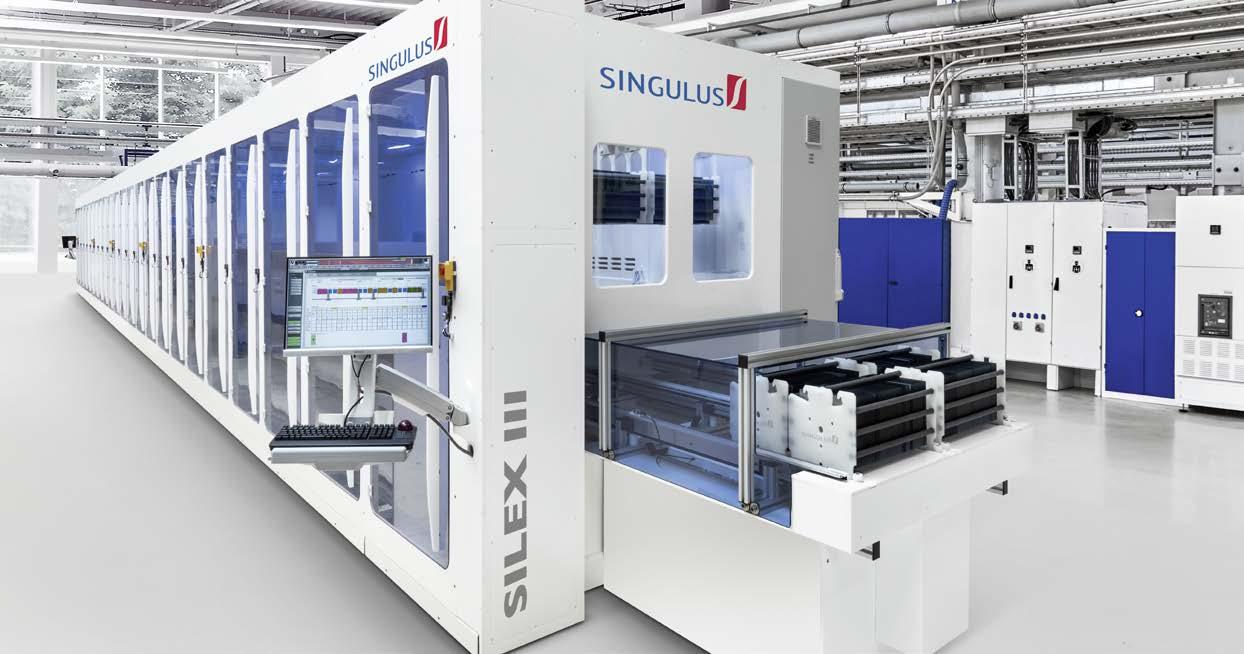 SINGULUS TECHNOLOGIES provides complete automated dry-in/dry-out solutions for wet-chemical treatments of Si-wafers in standard and highefficiency solar cell lines. The recently introduced modular SILEX III batch system offers a wide range of process options. With respect to highest flexibility in configuration, the SILEX III is characterized by a clear modular design and compact footprint.