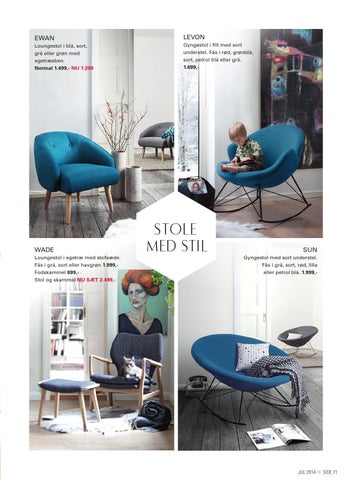 Loungestol i blå, sort, grå eller grøn med egetræsben. Normal 1.499,- NU 1.299