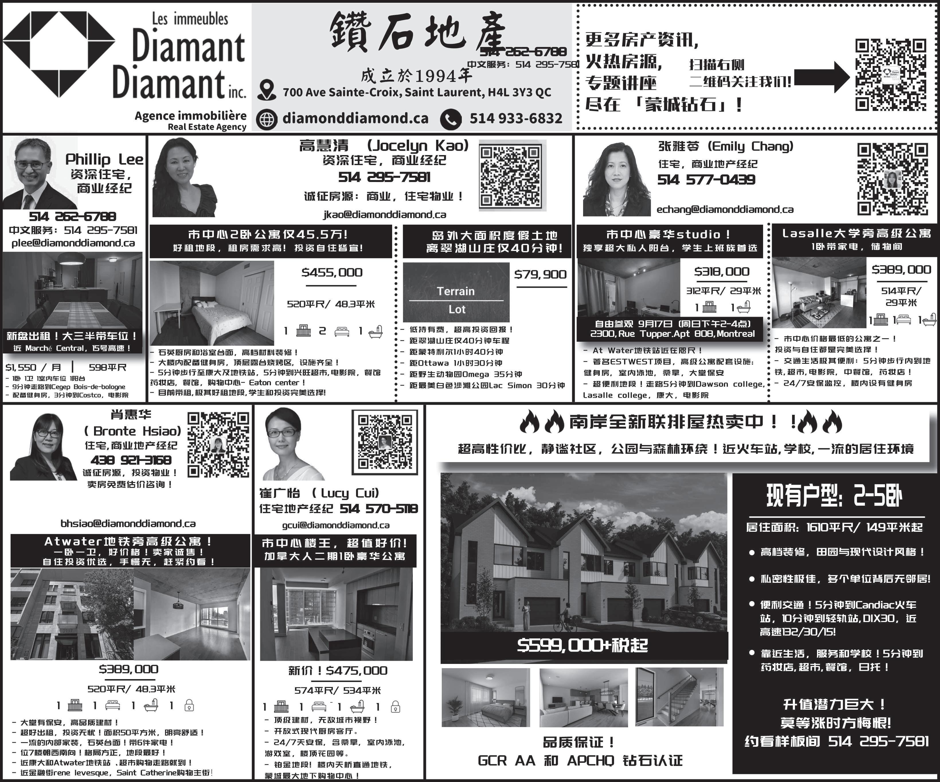 514.550.5888 quanliangyu@yahoo.com 514.549.6328 Yvonnexwang@gmail.com 514.691.1688 cindypy.68@gmail.com 514.501.7888 haoni1966@hotmail.com 438.938.0886 jia.nian8@gmail.com 514.869.6866 office.wxf@gmail.com 514.260.5835 jmvallieres2012@gmail.com 6678 Boul. Monk, Montréal Qc H4E 3J1 www.Im moExperts.com 514.829.6483 !"#!$%&'!"#!()*+,' !#-./0 1 1