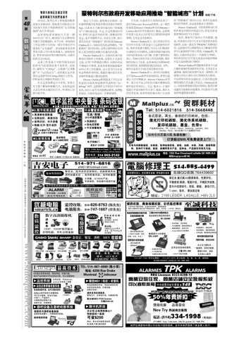 最近几个月中,蒙特利尔市政府一直 在静悄悄地开发和发布移动设备应用软件 App,以此来大力推动其提出的“智能城 市”计划向前迈进。不过,在这些移动应用 中,即使人们连其中的任何一款都没有听 说过,也不用感到不安。市议会主席、执行 委员会负责“智能城市”项目的委员Harout Chitilian表示,市政府是有意这样做的。 “智 能城市”项目的目标,是要让蒙特利尔在国 际上成为智能化和数字化城市的先驱。 Harout Chitilian表示,市政府在新开发 移动应用软件上的政策,是要在正式发布 之前,让用户不停地进行测试。市政府对这 个领域并不熟悉,但是非常渴望能够提供 100%正常工作的服务。这正是为什么在发 布这些软件的时候,要逐步地由部分市民 对软件性能进行测试的原因。 Harout Chitilian特别提及了可以让市 民追 踪市政 清理 道 路积雪进程的“InfoNeige”软件,这款软件去年仅在5个市区中 发布,而且只是作为功能测试使用。按照他 的说法,市政府每迈出一步都很谨慎。