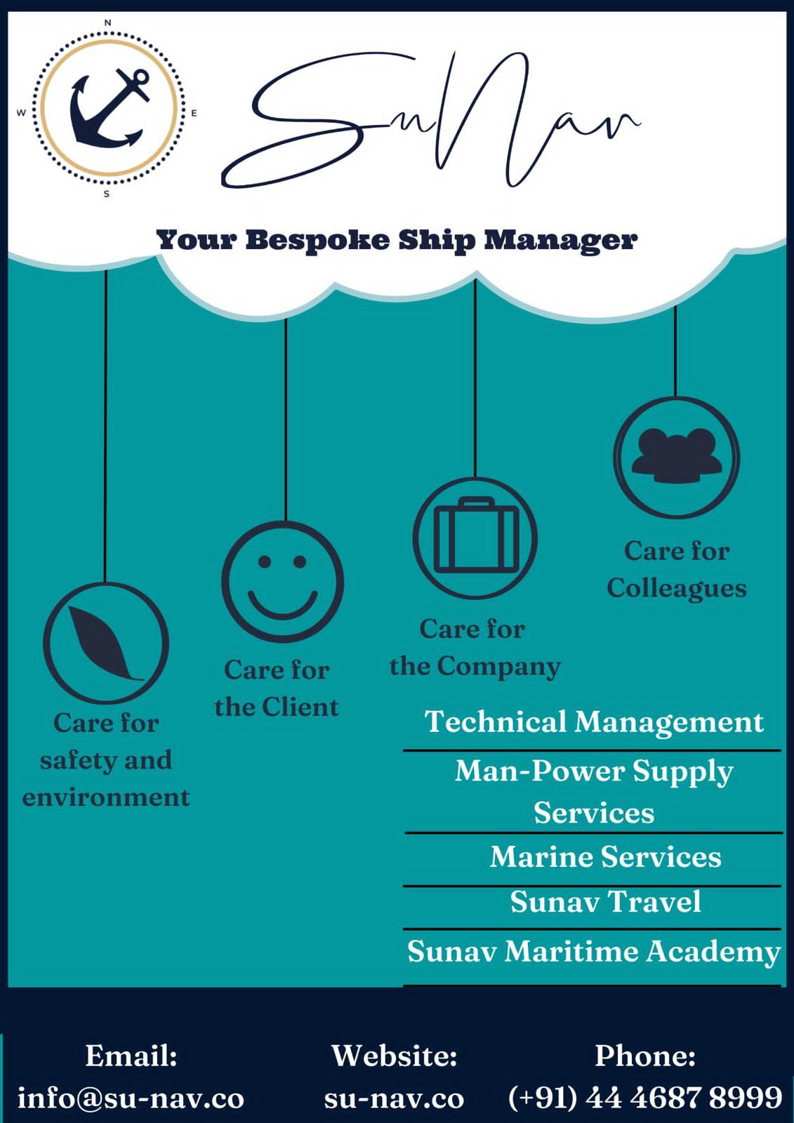 “We try to forge long-term thought and technical partnerships with rightthinking, modern and progressive owners so ESG goals are mutual targets, not points of conflict,” Unni says, going on to predict that as shipmanagers consolidate,