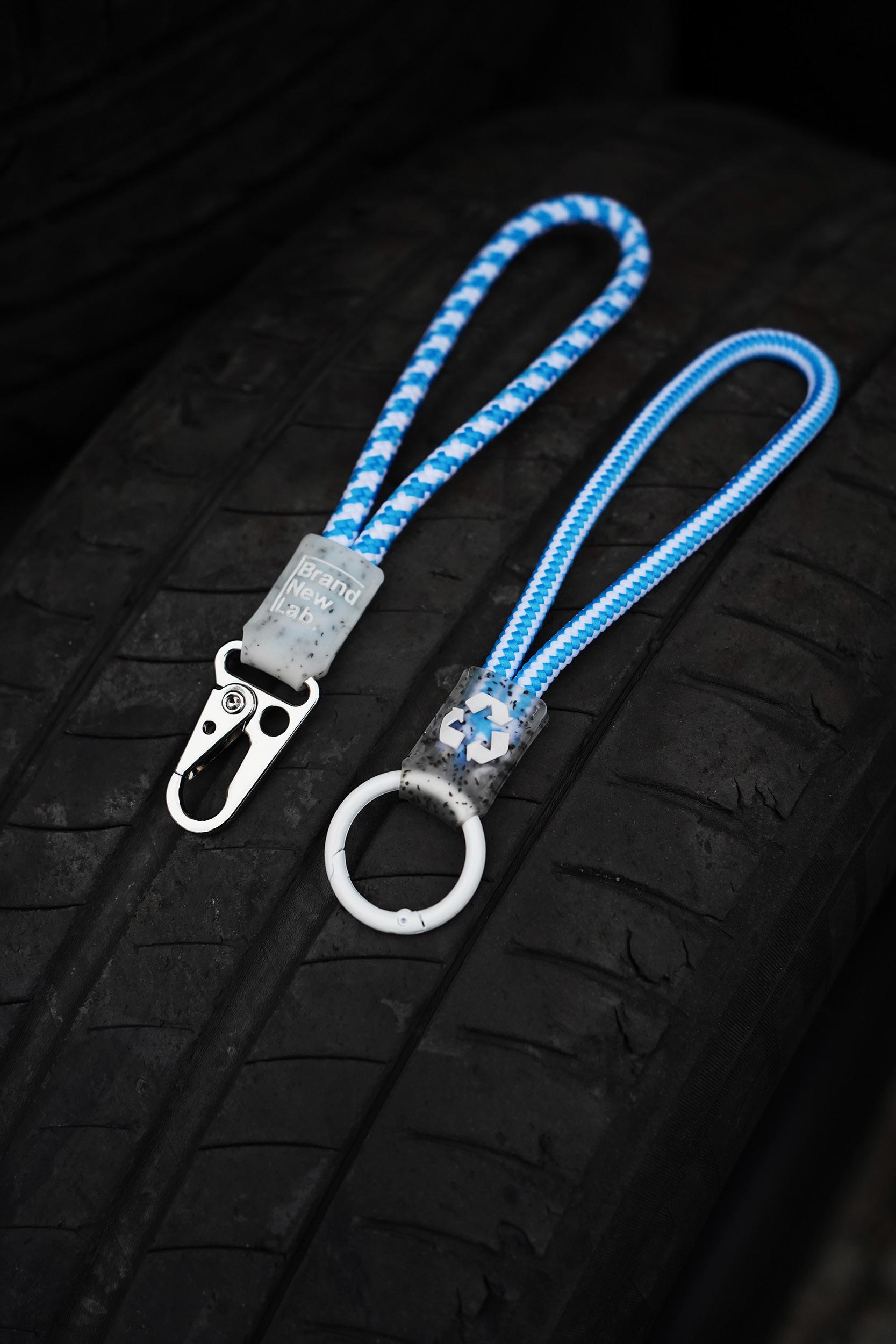 One way of recycling end-of-life tires is by shredding them to obtain crumb rubber, a microplastic material (<0.5 mm), used as infill in our rubber lanyards