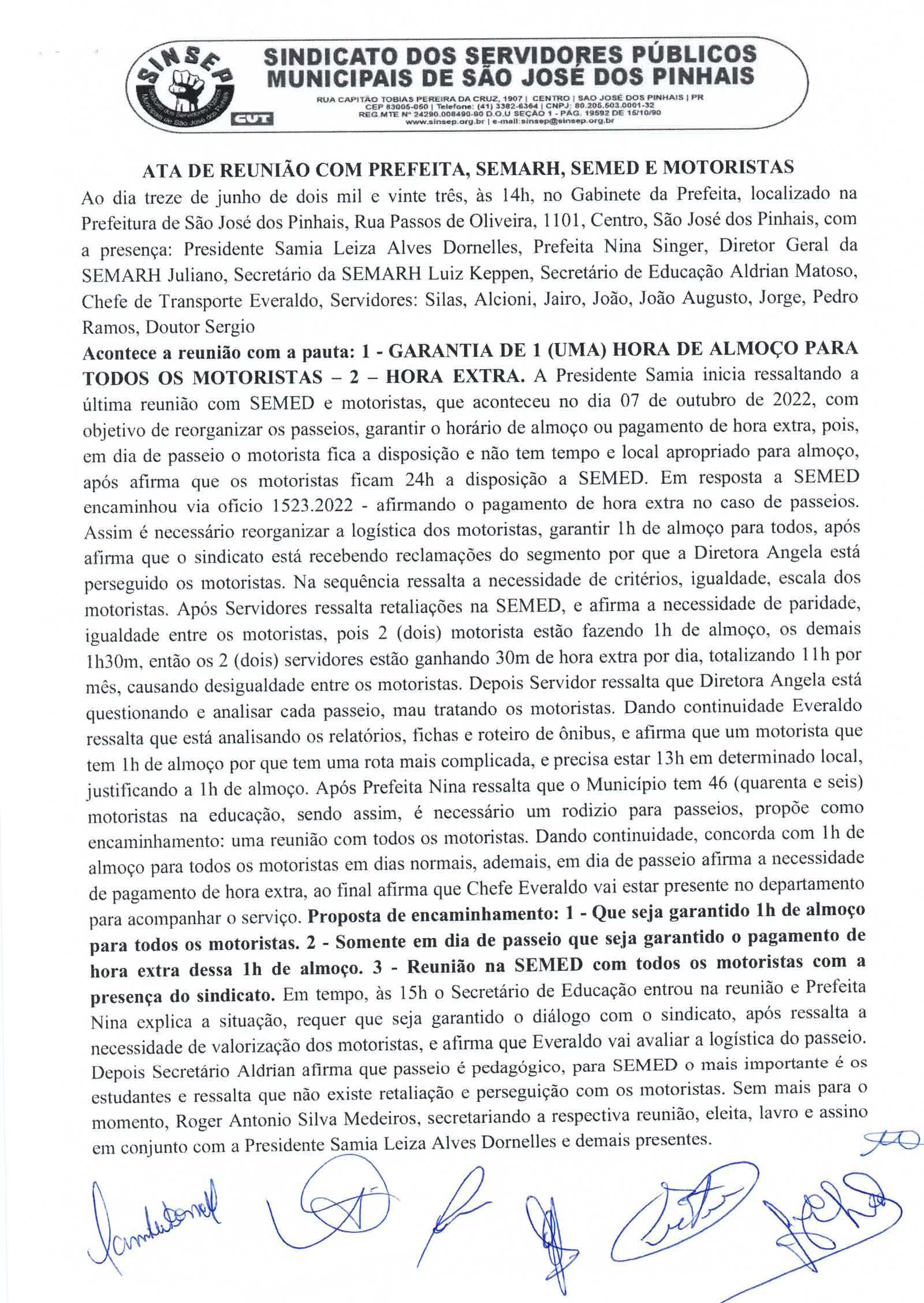 ATA DE REUNIÃO COM PREFEITA, SEMED E SEMARH 13 06 2023