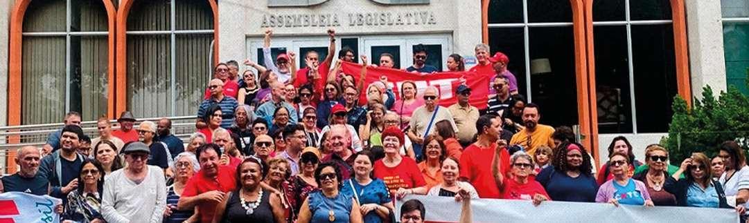 Professores e professoras da rede estadual de ensino,emsuamaioriaaposentadaseaposentados, participaram na manhã de quinta-feira (6) da