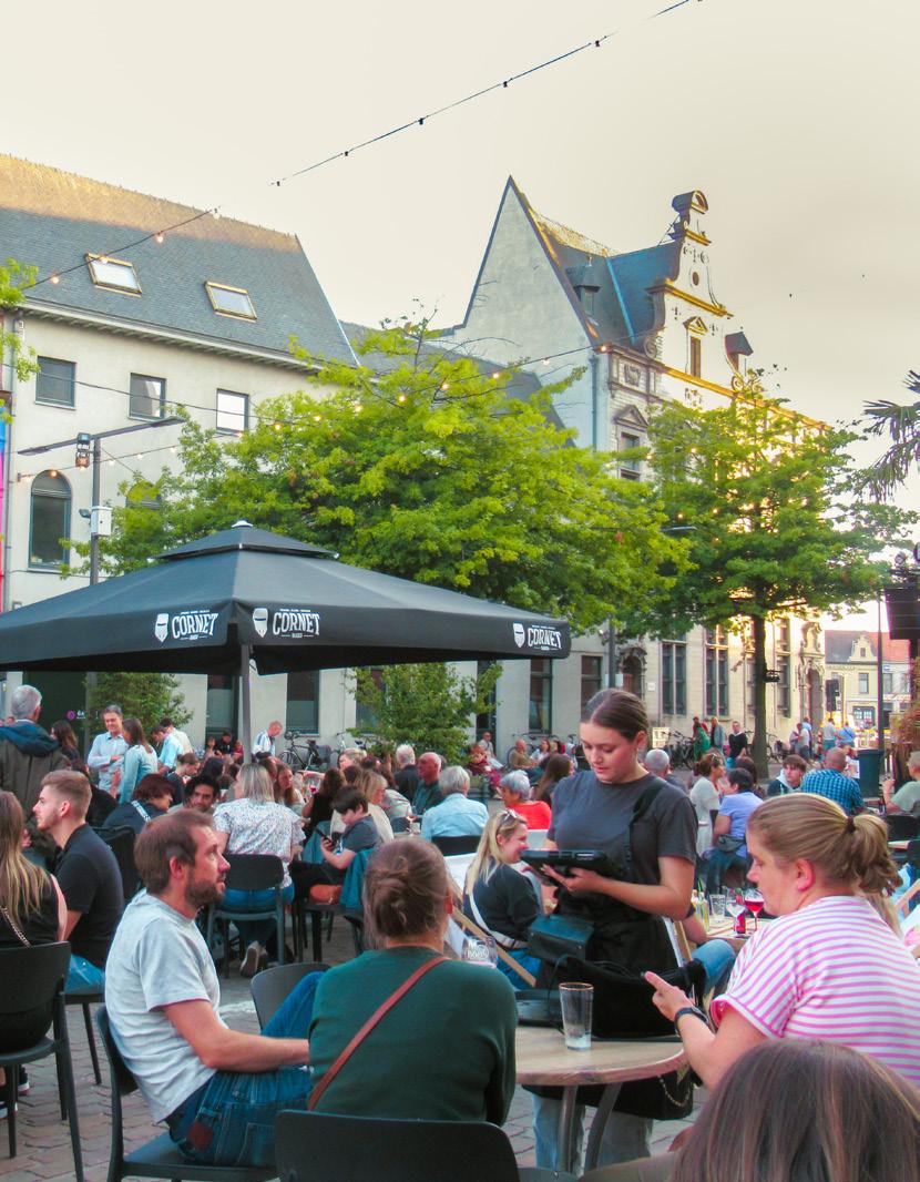 Dankzij de vernieuwde Grote Markt is hun terras groter dan ooit, en dat merken ze: “Het is druk, maar het geeft ook zoveel voldoening. Wij proeven op die manier mee van het feest.”