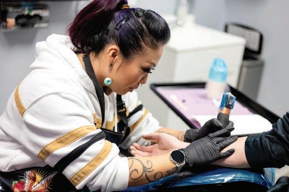THIS COMPASSIONATE MISSION inspired Liz to create Divergent Ink, LLC, a welcoming and diverse boutique that defies the stereotypical ‘tattoo shop’. “I wanted to create an environment that wasn’t intimidating for people of all ages, backgrounds, and walks of life. I wanted a different kind of shop—one that wasn’t just about tattoos but also about giving back to the community. I strive for a safe, professional, and drama-free environment and have cultivated an amazing crew. I’m grateful for each and every one of them.”
