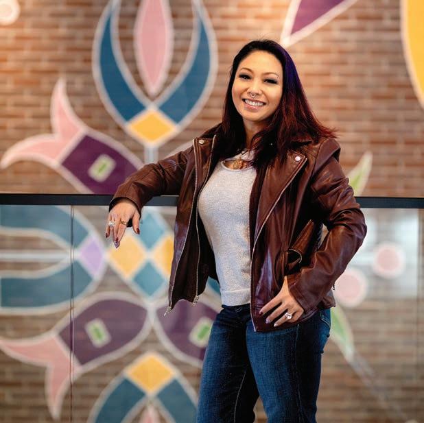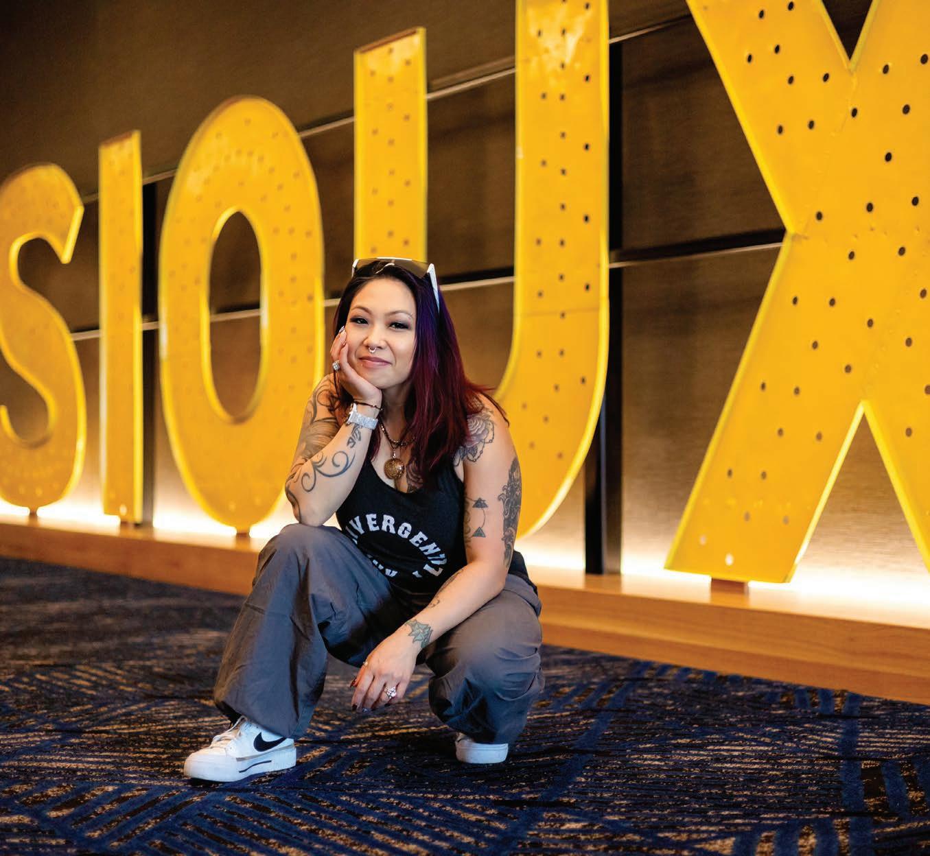HAVING ALWAYS EMBRACED FREEDOM and openmindedness, Liz has had more experiences than most people twice her age. She’s been an auto mechanic, auto sales professional, salon worker, general manager in retail and restaurant establishments, property manager, bartender, bar manager, bail bondsman, heavy machinery operator, dog trainer, tattoo artist, and permanent makeup artist. She’s also the only double-certified fibro blasting technician in South Dakota. “I’ve dabbled in a lot of stuff because it was a challenge, and I enjoyed it. Having worked all those multiple jobs at a time always opened new opportunities for me,” she shares.