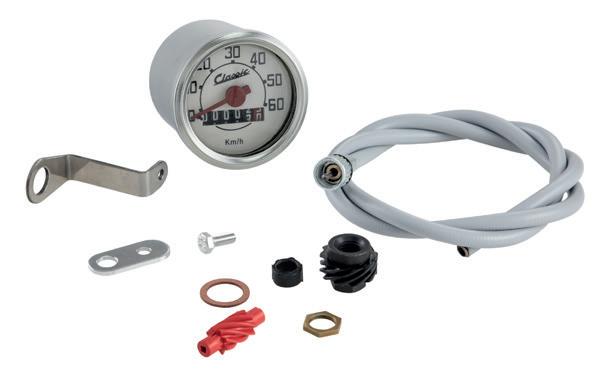 KIT SIP für Vespa 50 N/L/R/S/90 passt auch rund, Ø 52 mm, -60km/h, Ziffernblatt: weiß, Ziffern: schwarz, Tachoring: chrom