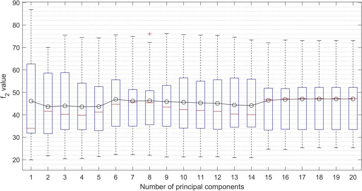 The obtained data set can be divided using PCA into 17 independent variables. We tried several combinations of principal components, but the best results were obtained when the number of PC was chosen to be 17 or more. Similar good results can be achieved by 6 PC, but as you can see on the boxplot (Figure 6), the model is more robust with 17 PCs.