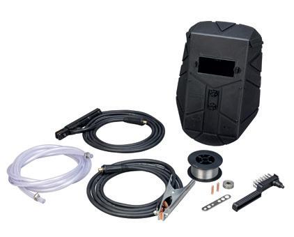 Complete package: Ready-to-use automatic welding headshield, air blower unit with battery, charger and hoses.