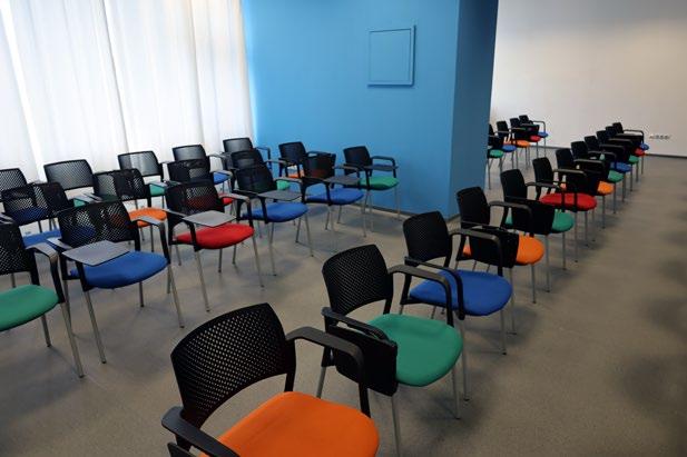 La Sala de Gradas es ideal para formaciones, workshops, reuniones o presentaciones. Para su funcionalidad, dispone del mobiliario necesario para el desarrollo de este tipo de eventos, sillas de pala y gradas móviles, y un equipo audiovisual completo.