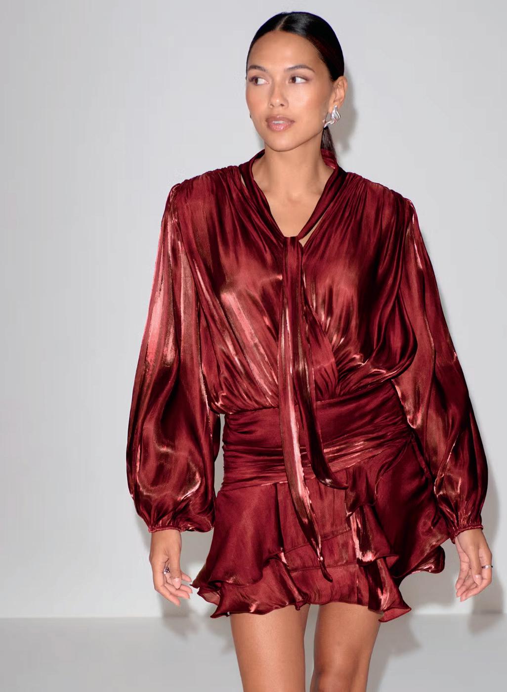 Sats på fargen dyp rød, paljetter, glitter og elegante detaljer for et julebordsantrekk som stråler av sofistikert glamour.