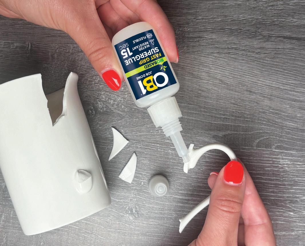 OB1 BioBased Fast Grip Superglue is the first repair glue containing 60% natural ingredients processed from castor oil.
