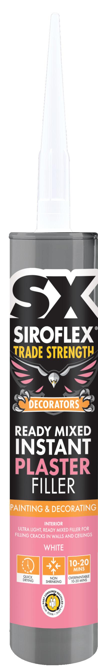 Our SX Decorators Ready Mixed Instant Plaster Filler is quick drying and can be over painted with emulsion based paint 10-20 minutes after application, subject to ambient conditions. After curing the product can also be sanded. Designs for use in filling joints and screw holes in plasterboard walls and ceilings and for filling and repairing holes in static joints in concrete, brickwork and plaster.